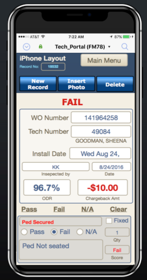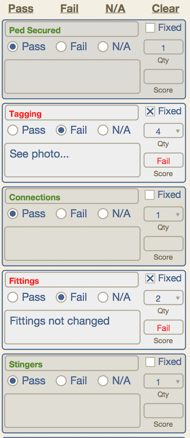Scroll through the QA items, mark pass or fail, enter notes and take photos... |