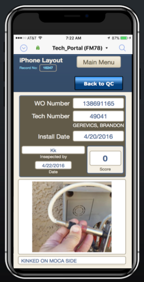 Photos taken at the job site are stored with the QA check. Photos are excellent tools for teaching and training.