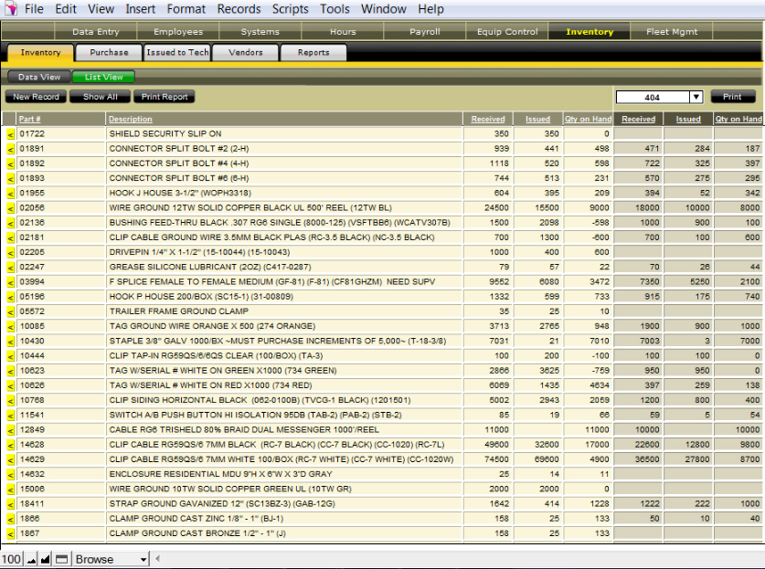 Whether you are tracking capitalized assets, expenses such as small tools or installation materials, our Inventory Control module will give you a precise and accurate accounting of every single item.