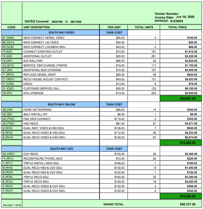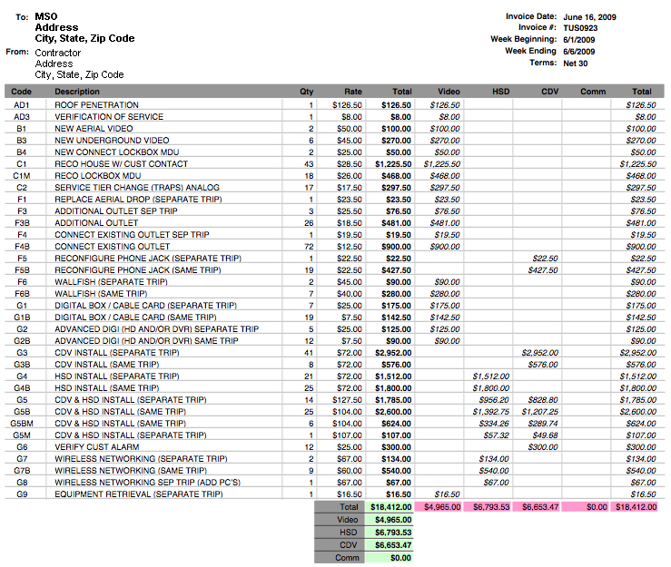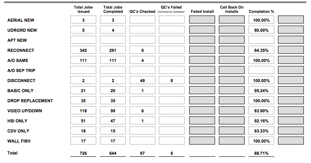 Often times the MSO requires reports to be submitted in a specific format. With the click of a mouse, this Contractor Report auto-calculates and auto-populates all the required fields. The alternative is to do a manual count of all required fields from all the work orders received the previous week.
