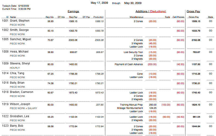 This is an illustration of a Payroll Report that is generated from your database then submitted directly to ADP. We will make your Payroll Report look exactly the way you want it to.